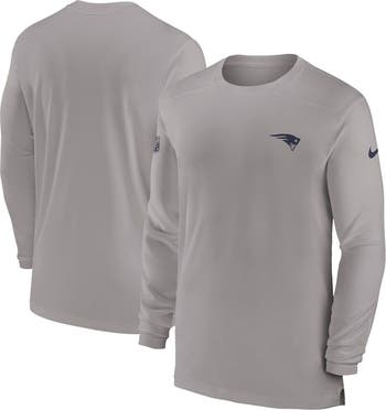 The Men's Nike Gray New England Patriots Sideline Coach Performance Long Sleeve T-shirt is the perfect way to show unwavering support for the New England Patriots. Made from breathable polyester, this long sleeve tee features Dri-FIT technology to keep you cool and comfortable during the game. Screen print graphics and side splits at the waist hem add a touch of style to this must-have piece for any true Patriots fan.