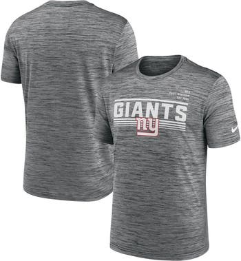 The Men's Nike Gray New York Giants Yardline Velocity Performance T-shirt is the perfect way to show your support for the New York Giants. Made from breathable polyester, this T-shirt features Dri-FIT technology to keep you cool and comfortable all game long. The crew neck and screen print graphics add a touch of style, while the New York Giants logo proudly displays your team spirit. Whether you're cheering from the stands or watching the game at home, this T-shirt is a must-have for any Giants fan.