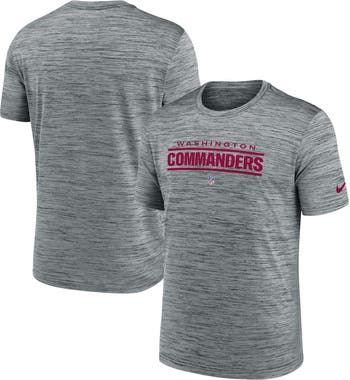 Celebrate your unwavering support for the Washington Commanders with the Men's Nike Gray Washington Commanders Velocity Performance T-shirt. Its space dye fabric and heat-sealed graphics proudly display your allegiance to the Commanders, while Dri-FIT technology keeps you comfortable and dry throughout the game. Whether you're cheering from the stands or representing your team off the field, this t-shirt is the perfect way to show your Washington Commanders pride.