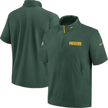 Men's Nike Green Green Bay Packers 2024 Sideline Coach Short Sleeve Half-Zip Hoodie Jacket