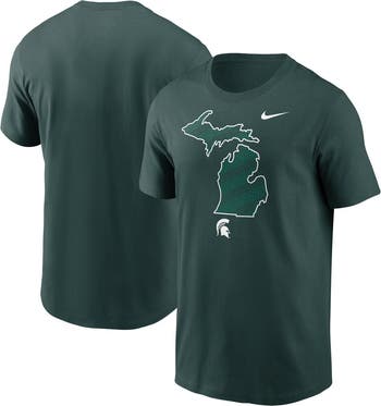 Emphasize your dedication to the Michigan State Spartans with this Campus State Shape T-shirt. Made by Nike, it features a bold team design that stands out against the solid fabric. Cotton material provides a comfortable feel for the next Michigan State Spartans game day or casual wear.