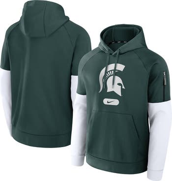 Step up your Michigan State Spartans workout wear with this Nike Fitness Performance Pullover Hoodie. Featuring Nike's signature Dri-FIT technology, this hoodie wicks away moisture to keep you dry and comfortable during your workout. The fleece lining provides added warmth and a soft feel, making it ideal for moderate temperatures.