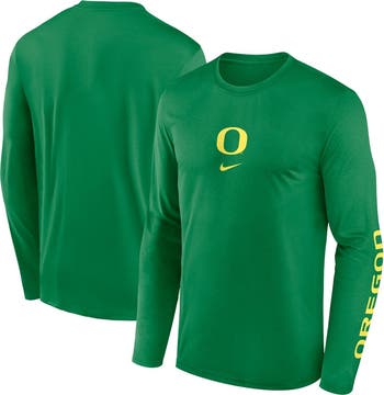 Combine modern performance and Oregon Ducks fandom with this Primetime Two-Hit Legend Dri-FIT Long Sleeve T-Shirt from Nike. It features sweat-wicking technology to keep you cool and dry, whether you're at the game or out and about. Lightweight jersey fabric gives this Oregon Ducks tee a comfortable feel all day.