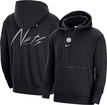 The Men's Nike Heather Black Brooklyn Nets Courtside Versus Flight Pullover Hoodie is the ultimate way to show unwavering support for the Brooklyn Nets. This midweight hoodie features a cozy fleece lining, perfect for keeping you warm during chilly games. The heathered fabric and sewn-on silicone applique add a touch of style, while the front pouch pocket with zippered compartment provides convenient storage for essentials. Whether cheering from the stands or hanging out, this hoodie is the perfect way to represent your favorite team.