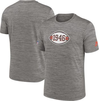 The Men's Nike Heather Charcoal Cleveland Browns 2023 Sideline Alternate Logo Performance T-shirt is the perfect way to show unwavering support for the Cleveland Browns. Made from breathable polyester, this performance tee features heat-sealed graphics that proudly display the Browns' iconic logo. Whether cheering from the stands or watching the game at home, this tee will keep you comfortable and stylish while showcasing your Browns pride.