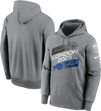 Men's Nike Heather Charcoal Jacksonville Jaguars vs. Buffalo Bills 2023 London Game Pullover Hoodie
