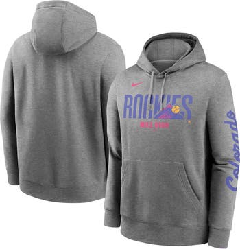 The Colorado Rockies welcome fans to "Colorful Colorado" with this 2025 City Connect French Terry Club Fleece Pullover Hoodie from Nike. Inspired by the diverse landscapes and natural beauty of the Centennial State, this City Connect gear combines Colorado's colorful scenic views with the Colorado Rockies logo to create a truly unique and eye-catching design. From the Rocky Mountains to Coors Field, you'll be able to represent your favorite MLB team in style and comfort all season long.