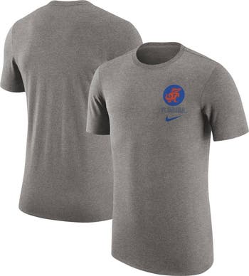 The Men's Nike Heather Gray Florida Gators Retro Tri-Blend T-Shirt is the perfect way to show your unwavering support for the Florida Gators. Made from a comfortable blend of polyester, cotton, and rayon, this T-shirt features a retro design that will make you stand out from the crowd. The Florida Gators logo is proudly displayed on the front. Whether you're cheering on the Gators at the stadium or just relaxing at home, this T-shirt is sure to become a favorite.