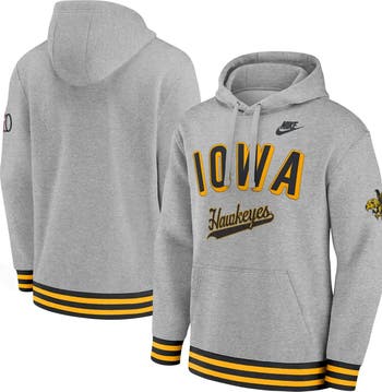 Stay warm in throwback style with this Iowa Hawkeyes Legacy Retro Pullover Hoodie by Nike. Embroidered appliques and rib-knit trim add vintage touches to the modern design. Dropped shoulders provide plenty of room for comfortable movement, while cozy fleece fabric keeps you comfy in this classic Iowa Hawkeyes hoodie.