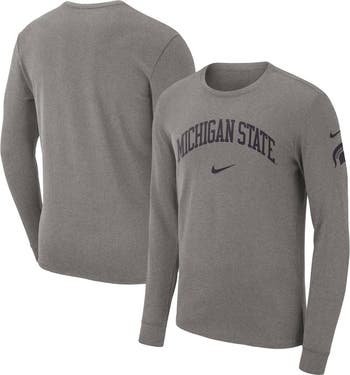 Men's Nike Heather Gray Michigan State Spartans Arch 2-Hit Long Sleeve T-Shirt