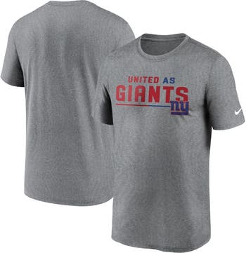 The Men's Nike Heather Gray New York Giants Legend Team Shoutout Performance T-shirt is the perfect way to show unwavering support for the New York Giants. Made from sweat-wicking Nike Dry fabric, this T-shirt keeps you comfortable and focused on the game. Screen-printed graphics proudly display the New York Giants logo, leaving no doubt about your allegiance. Whether cheering from the stands or watching from home, this T-shirt is a must-have for any true New York Giants fan.
