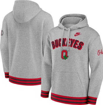 Stay warm in throwback style with this Ohio State Buckeyes Legacy Retro Pullover Hoodie by Nike. Embroidered appliques and rib-knit trim add vintage touches to the modern design. Dropped shoulders provide plenty of room for comfortable movement, while cozy fleece fabric keeps you comfy in this classic Ohio State Buckeyes hoodie.