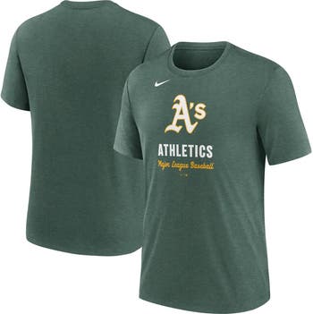 Show your Athletics pride in classic comfort with this Logo Tri-Blend T-Shirt by Nike. It features a lightweight, breathable feel thanks to a blend of polyester, cotton and rayon fabrics. The printed team details keep your Athletics fandom front and center.