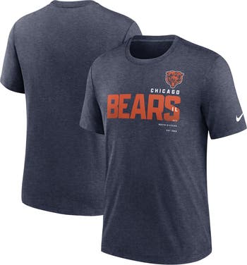 The Men's Nike Heather Navy Chicago Bears Team Tri-Blend T-Shirt is the perfect way to show unwavering support for the Chicago Bears. Made from a comfortable cotton, polyester, and rayon blend, this tri-blend T-shirt features screen-printed graphics that proudly display the Chicago Bears logo. The crew neck and slight droptail provide a classic and comfortable fit, making it perfect for any occasion. Whether cheering on the Bears at Soldier Field or showing team spirit around town, this T-shirt is sure to become a favorite.
