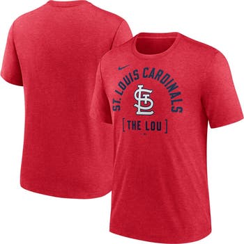 The Men's Nike Heather Red St. Louis Cardinals Swing Big Tri-Blend T-shirt is the perfect way to show your support for the St. Louis Cardinals. Made from a comfortable polyester, cotton, and rayon blend, this t-shirt features screen-printed graphics that proudly display the Cardinals logo. The crew neck and relaxed fit make this t-shirt perfect for any casual occasion, whether you're cheering on the Cardinals at the stadium or relaxing at home.