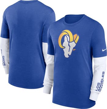 The Nike Heather Royal Los Angeles Rams Slub Fashion Long Sleeve T-shirt is the perfect way to show unwavering support for the Rams. This stylish tee features a crew neck, screen-printed graphics, and a layered design that will make you stand out. Made from a comfortable cotton and polyester blend, this shirt is perfect for any occasion, whether you're cheering on the Rams at the stadium or relaxing at home.