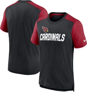 The Men's Nike Heathered Black/Heathered Cardinal Arizona Cardinals Color Block Team Name T-shirt is the perfect way to show your support for the Arizona Cardinals. Made from a comfortable cotton and polyester blend, this T-shirt features a crew neck, droptail hem with side splits, and screen print graphics that proudly display the Arizona Cardinals logo. Whether you're cheering from the stands or just hanging out at home, this T-shirt is sure to make you feel like part of the team.