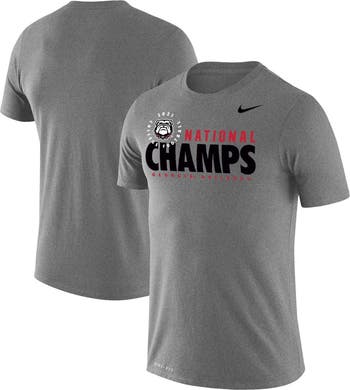 Celebrate the Georgia Bulldogs' historic 2021 National Championship victory with the Men's Nike Heathered Gray Georgia Bulldogs College Football Playoff 2021 National Champions Stack Performance T-shirt. This performance tee features screen-printed graphics that proudly display the Georgia Bulldogs logo and commemorate their triumph. Made from breathable polyester with Dri-FIT technology, it keeps you comfortable and dry while cheering on your beloved Bulldogs. Show your unwavering support for the Georgia Bulldogs and their championship legacy with this commemorative T-shirt.