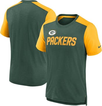 Celebrate your unwavering Green Bay Packers fandom with the Men's Nike Heathered Green/Heathered Gold Green Bay Packers Color Block Team Name T-Shirt. This stylish tee features a crew neck and droptail hem with side splits, ensuring a comfortable fit. The screen print graphics proudly display the Green Bay Packers team name, showcasing your allegiance to the iconic NFL franchise. Whether you're cheering from the stands or simply showing your support, this t-shirt is the perfect way to represent the Green Bay Packers in style.