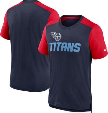 The Men's Nike Heathered Navy/Heathered Red Tennessee Titans Color Block Team Name T-shirt is a must-have for any devoted Tennessee Titans fan. Its bold screen print graphics proudly display your allegiance to the Titans, while the comfortable cotton and polyester blend ensures all-day comfort. Whether you're cheering from the stands or simply showing your support, this T-shirt is the perfect way to represent the Tennessee Titans and celebrate your passion for the NFL.