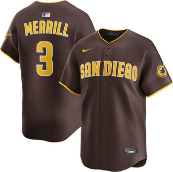 Give your San Diego Padres look an upgrade with this Jackson Merrill Road Limited Jersey by Nike. Designed to mirror the on-field jersey, its double-knit mesh fabric provides a breathable and comfortable feel. The Vapor Premier chassis allows for a full range of motion and teams up with Dri-FIT technology to keep you cool and dry, whether you're in the stands or out on the town.