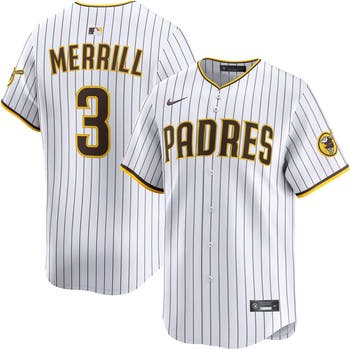 Give your San Diego Padres look an upgrade with this Jackson Merrill Limited Player Jersey by Nike. Designed to mirror the on-field jersey, its double-knit mesh fabric provides a breathable and comfortable feel. The Vapor Premier chassis allows for a full range of motion and teams up with Dri-FIT technology to keep you cool and dry, whether you're in the stands or out on the town.