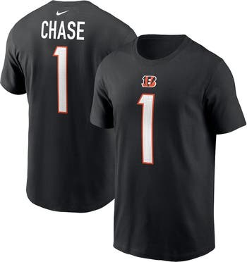 Ja'Marr Chase is consistently one of the most dominant players on the gridiron. This Player Name and Number T-shirt from Nike is a strong tribute to your favorite player's career with the Cincinnati Bengals. Designed as a simple alternative to the on-field jerseys, this player tee features bold graphics on the front and back so you can proudly support your Cincinnati Bengals.