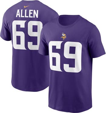 Pay tribute to a Minnesota Vikings legend with this Jared Allen Retired Player Name & Number T-Shirt by Nike. The front features a printed team logo, and the back displays player details for one of the team's all-time greats. Made from lightweight jersey fabric, this Jared Allen tee provides a comfortable feel all day.