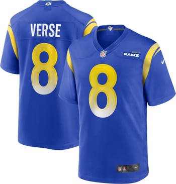 Rep the on-field look of your favorite Los Angeles Rams player with this Jared Verse Fashion Game Jersey from Nike. Its screen print name, numbers and team details provide a kickoff-ready aesthetic while also offering a comfortable, lightweight feel. Designed for everyday movement, this jersey has a versatile tailored fit and features mesh side panels for added ventilation as you celebrate every big play by the Los Angeles Rams this season.