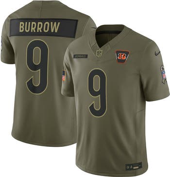 Represent your favorite Cincinnati Bengals player in honor of our nation's heroes with this Joe Burrow 2025 Salute to Service Limited Jersey by Nike. It showcases military-inspired team details, an American flag patch and smooth numbers. Crafted from breathable double pique fabric with sweat-wicking Dri-FIT technology, this Joe Burrow jersey provides premium comfort while you join the Cincinnati Bengals in supporting those who bravely serve. The NFL does not profit from the sale of Salute to Service products. Charitable contributions are awarded by the NFL Foundation to the NFL's Salute to Service nonprofit military partners.