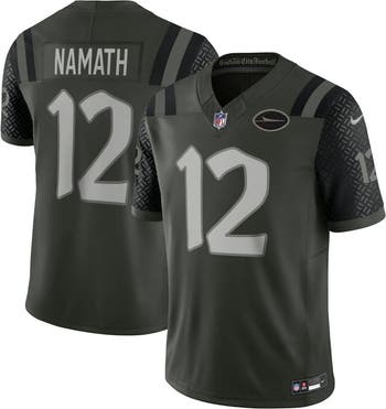 This New York Jets 2025 Rivalries Collection Retired Player Limited Jersey from Nike is inspired by the heights of NYC's iconic skyline and city street textures that bring the team and their fans together. With a dark green backdrop and black accents, the Gotham City Football design delivers an authentic touch on game day. Sweat-wicking double pique fabric helps provide consistent comfort as you rep the legendary Joe Namath.