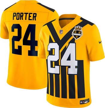 Walking into the stadium, you feel a rush of energy pass over you. You adjust your Pittsburgh Steelers Alternate 1933 Throwback Limited jersey and know you're ready to get swept up in the electricity of the game. Made for authenticity-seeking fans, this state-of-the-art Nike Vapor F.U.S.E. jersey draws inspiration from your team's on-field look with reimagined seamlines and a chainmaille mesh grill at the front neck. Its updated embellishments include sublimated twill name and numbers, which are heat-transferred onto the front and back panels to show support for your favorite player. Lightweight, breathable fabric with built-in Dri-FIT technology keeps you cool and comfortable as you celebrate every big play by Joey Porter Jr. this season.
