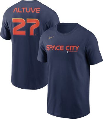 Sporting this Jose Altuve City Connect Name & Number T-Shirt puts your Houston Astros fandom front and center. This special piece of Nike gear features classic Houston Astros graphics and Jose Altuve details for a jersey-inspired design. Plus, the classic tee construction and soft material ensure comfort with each wear for a go-to game day favorite.