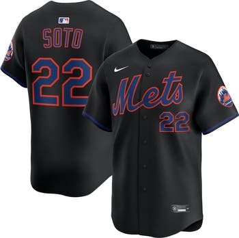 Show your New York Mets pride with this Juan Soto Alternate Limited Player Jersey from Nike, and feel like part of the team every time you wear it. This jersey is crafted with breathable double-knit mesh fabric and Nike's signature Dri-FIT technology, keeping you cool and comfortable as you cheer on the New York Mets. The heat-applied twill appliques with faux stitching and embroidered Nike Swoosh add premium, authentic touches.