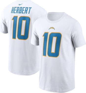 Justin Herbert is consistently one of the most dominant players on the gridiron. This Player Name and Number T-shirt from Nike is a strong tribute to your favorite player's career with the Los Angeles Chargers. Designed as a simple alternative to the on-field jerseys, this player tee features bold graphics on the front and back so you can proudly support your Los Angeles Chargers.