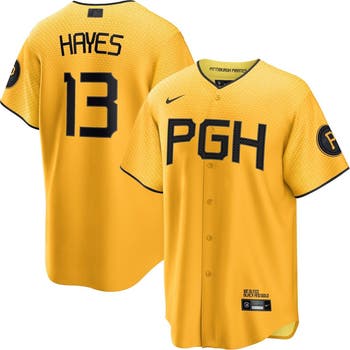The confluence of three rivers and steel built Pittsburgh into the city it is today. This Pittsburgh Pirates Ke'Bryan Hayes City Connect Replica Player Jersey from Nike honors those tenants of the city. The "Y" design on the jersey represents the meeting of the Allegheny, Monongahela and Ohio River while the star is an homage to Pittsburgh's rich history in the steel industry. The arched wordmark highlights the bridges that connect the city of Pittsburgh. All those details come together to create the perfect jersey for all those who bleed black and gold.