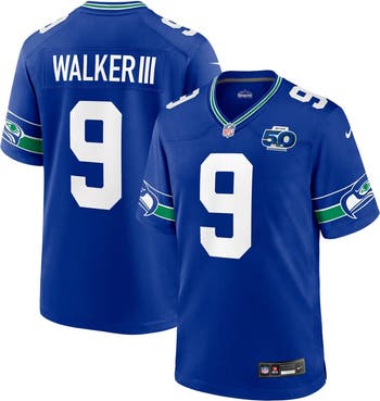 Celebrate five decades of Seattle Seahawks football with this striking Kenneth Walker III Game Jersey from Nike. This jersey embodies the spirit of the franchise with its classic design and commemorative 50th Season details. Featuring a loose fit for comfortable movement, mesh side panels for breathability, and stitched NFL Shield at the collar, this jersey is built for both performance and pride. The heat-sealed name, numbers, and team details, along with a satin woven jock tag, complete this authentic piece, making it a must-have for any dedicated Seattle Seahawks fan looking to honor the team's past and present.