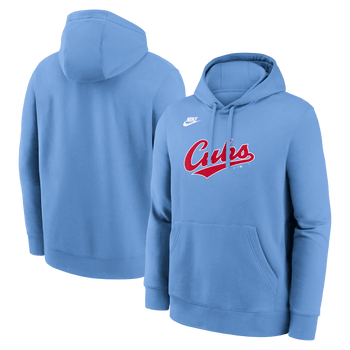 This Chicago Cubs Cooperstown Collection Wordmark Club Hoodie is crafted by Nike for vintage style and lasting comfort. It features a throwback team wordmark printed on midweight fleece fabric with a brushed lining for cozy warmth. An adjustable three-panel hood and pouch pocket add functional details to this essential Chicago Cubs hoodie.