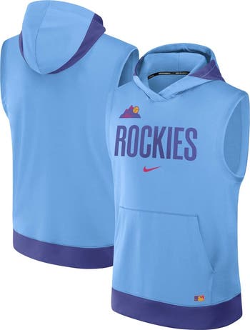 The Colorado Rockies welcome fans to "Colorful Colorado" with this 2025 City Connect Authentic Collection Sleeveless Performance Pullover Hoodie from Nike. Inspired by the diverse landscapes and natural beauty of the Centennial State, this City Connect gear combines Colorado's colorful scenic views with the Colorado Rockies logo to create a truly unique and eye-catching design. From the Rocky Mountains to Coors Field, you'll be able to represent your favorite MLB team in style and comfort all season long.