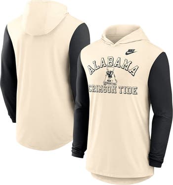 Show your dedication to the Alabama Crimson Tide with this Legacy Color-Block Tri-Blend Long Sleeve Hoodie T-Shirt by Nike. Made with Move To Zero sustainable materials, it's part of Nike's journey toward zero carbon and zero waste. The lightweight jersey fabric has a lightweight feel with slight dropped shoulders and a rounded droptail hem, making this Alabama Crimson Tide tee comfortable and stylish.