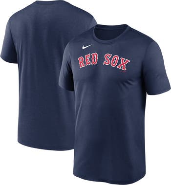 The Men's Nike Navy Boston Red Sox New Legend Wordmark T-Shirt is a must-have for any loyal Boston Red Sox fan. With its screen print graphics and Dri-FIT technology, this T-shirt will keep you comfortable and stylish while you cheer on your favorite team. The Boston Red Sox logo is proudly displayed on the front, so you can show your support for the team wherever you go.