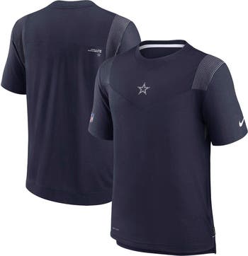 The Men's Nike Navy Dallas Cowboys Sideline Player UV Performance T-shirt is the ultimate way to show your unwavering support for the Dallas Cowboys. Crafted from lightweight and breathable polyester, this shirt ensures all-day comfort, while the UV protection feature keeps you shielded from the sun's harmful rays. The heat-sealed applique with silicone details and perforated chest and back panels add a stylish touch, and the rib-knit elastic panels at the shoulder cuffs provide a snug and comfortable fit. Whether you're cheering your team on from the stands or unwinding at home, this T-shirt is a must-have for any dedicated fan.