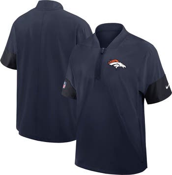 Look like one of the Denver Broncos coaching staff in this Sideline Short Sleeve Quarter-Zip Coach Jacket by Nike. Crafted with water-repellent taffeta fabric, it offers lightweight, breathable coverage from the elements. Zippered side seams allow for easy use, making this Denver Broncos jacket perfect for layering in changing weather conditions.