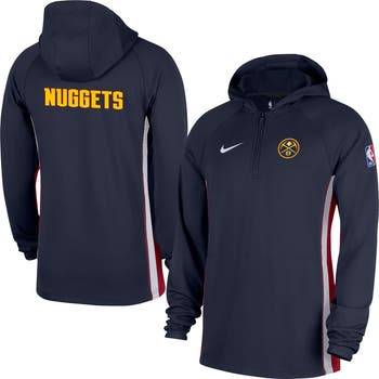 Rep your Denver Nuggets with this Authentic On Court Zone Quarter-Zip Dri-FIT Hoodie Jacket from Nike. Featuring Dri-FIT technology that wicks away moisture, this midweight pullover is perfect for moderate temperatures, keeping you comfortable whether you're on the court or cheering from the stands. The raglan sleeves offer greater freedom of movement, and the front pouch pocket provides convenient hands-free storage.