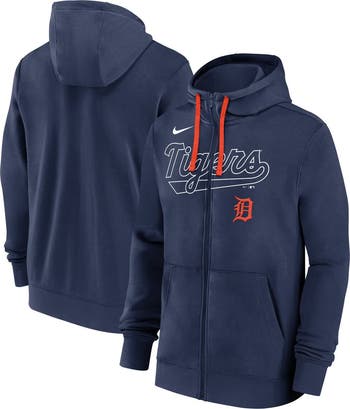 Stay comfortable in changing weather conditions wearing this Detroit Tigers Knockout Script Full-Zip Hoodie by Nike. Designed with fleece lining to provide ultimate comfort and warmth, it's perfect for cool evenings at the ballpark. An adjustable hood and pockets give you added coverage in this Detroit Tigers hoodie.