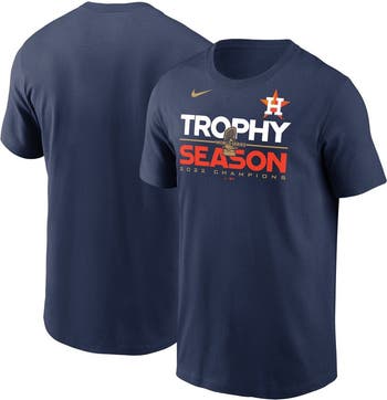 Celebrate the Houston Astros' triumphant 2022 World Series victory with the Men's Nike Navy Houston Astros 2022 World Series Champions Commissioner's Trophy T-shirt. This commemorative tee features screen-printed graphics that proudly display the Astros' iconic logo and the Commissioner's Trophy, symbolizing their hard-fought victory. Made from soft cotton, this T-shirt offers comfort and breathability, making it perfect for cheering on the Astros or showcasing your unwavering support for the team.