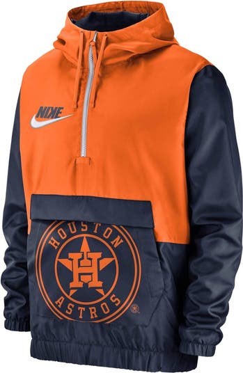Top off your game day outfit with this special Houston Astros Anorak 1/2-zip pullover hooded jacket from Nike!