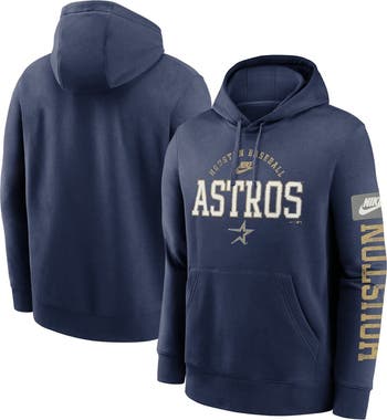 The Men's Nike Navy Houston Astros Cooperstown Collection Splitter Club Fleece Pullover Hoodie is the perfect way to show your support for the Houston Astros. Made from a soft cotton and polyester blend, this midweight hoodie is perfect for moderate temperatures. Distressed screen print graphics give it a vintage look, while the front pouch pocket is perfect for storing your essentials. Whether you're cheering on the Astros at the stadium or relaxing at home, this hoodie is sure to keep you comfortable and stylish.