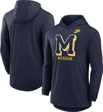 Represent Michigan Wolverines history in modern style with this Legacy Tri-Blend Dri-FIT Long Sleeve Hoodie T-Shirt by Nike. It combines lightweight jersey fabric and sweat-wicking technology to keep you cool and dry. The rounded droptail hem gives this Michigan Wolverines shirt added coverage for a more comfortable fit and feel.