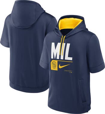 Men's Nike Navy Milwaukee Brewers Tri Code Lockup Short Sleeve Pullover Hoodie